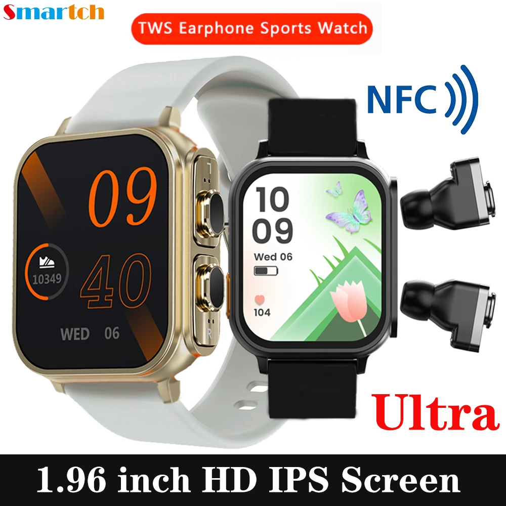 2023 New 2 In 1 Wireless Blue Tooth ENC Noise Cancelling TWS Earphones Smart Watch 1.96 Sports Heart Rate NFC Ultra Smartwatch| | - AliExpress